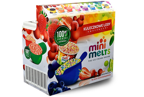 Mūsu unikālā ražošanas tehnoloģija. Mēs regulāri izstrādājam jaunas garšas un receptes. Mūsu produkti nemainās: Mini Melts saldējumi ir augstākās kvalitātes produkti. Saldējums ir izgatavots no svaiga piena un krējuma. Tas nesatur mākslīgas krāsvielas vai konservantus. Tikai dabīgas piedevas. . Mēs turpinām attīstīties, katru gadu atverot jaunas tirdzniecības vietas. Mūsu plāni nākotnē ir iekarot visu Eiropas tirgu! Mūsu unikālais produkts ir veiksmes recepte - mūsu atspirdzinošie deserti, kas tiek pasniegti krāsainos trauciņos un beisbola cepurītēs.