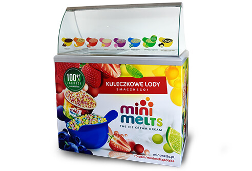 Mini Melts saldējumu var pārdot tikai no speciālām iekārtām un pasniedz ar sertificētiem piederumiem. Skatieties iespējas!